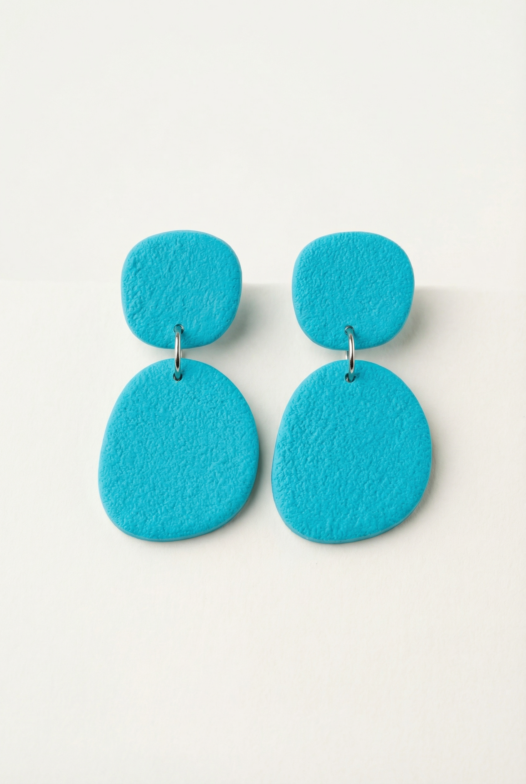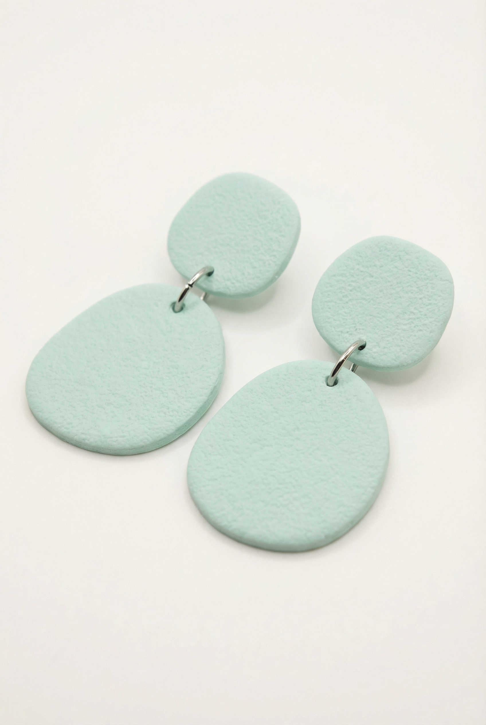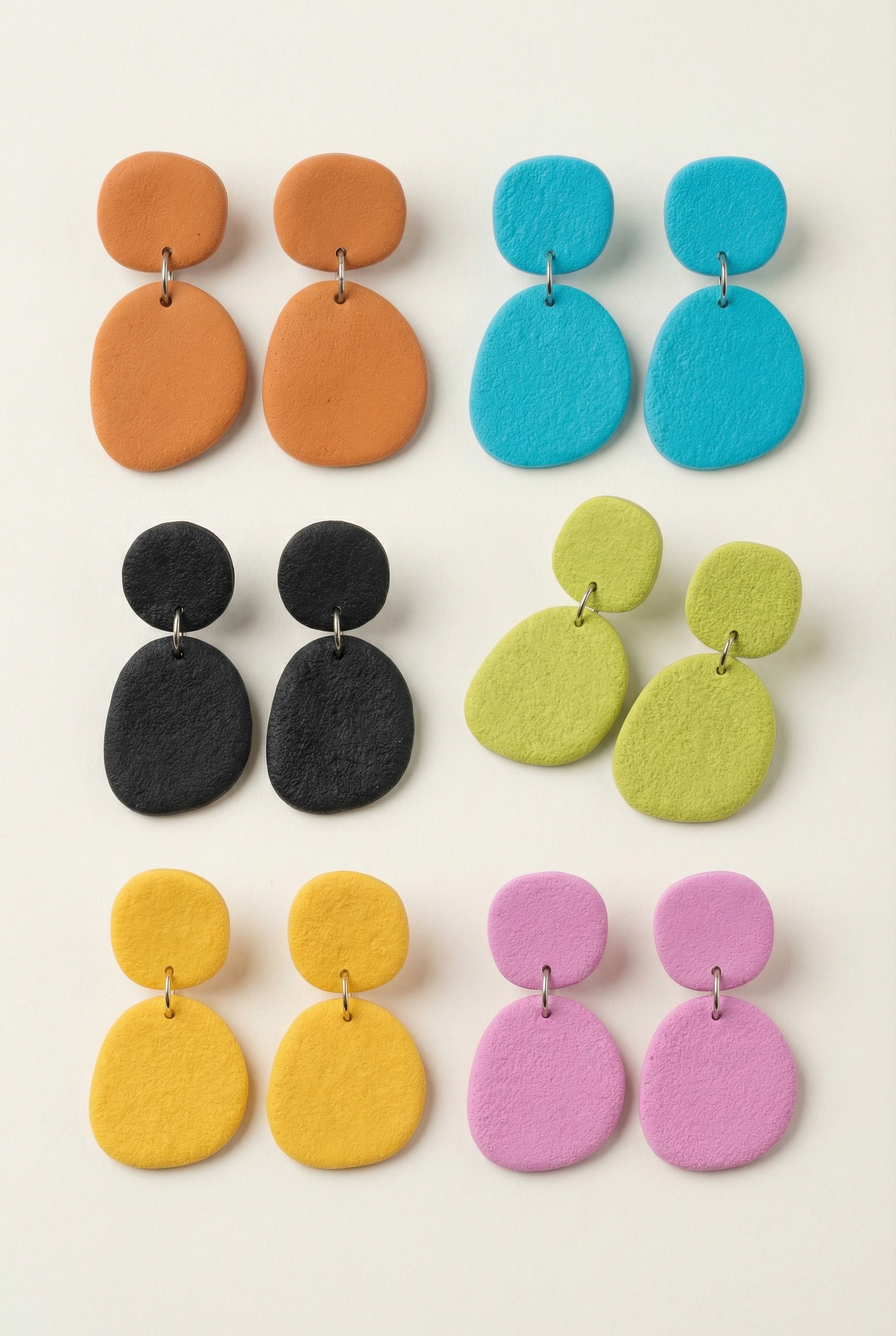 Handmade polymer clay drop earrings in a range of carefully selected colors, each finished with a soft sand-textured surface that adds depth and a natural, matte feel.