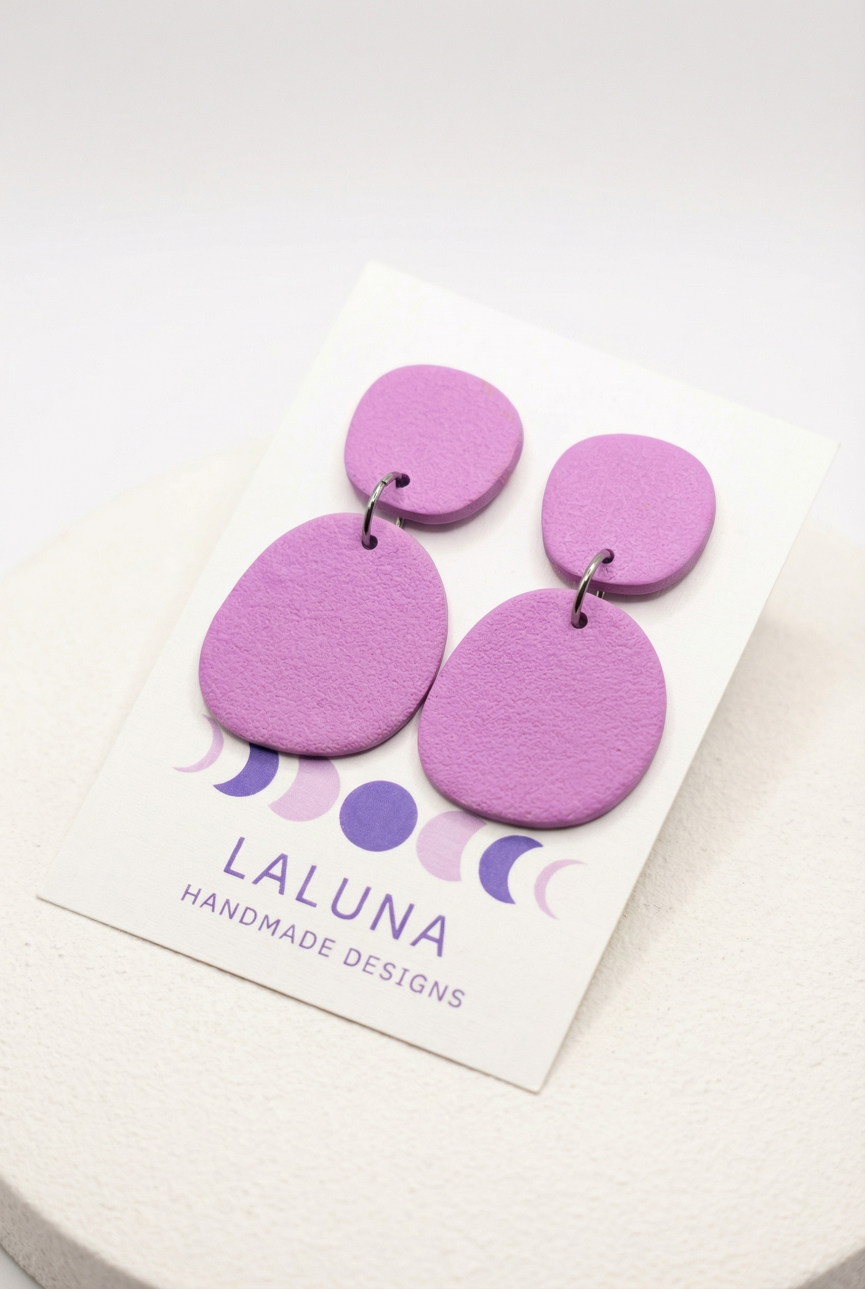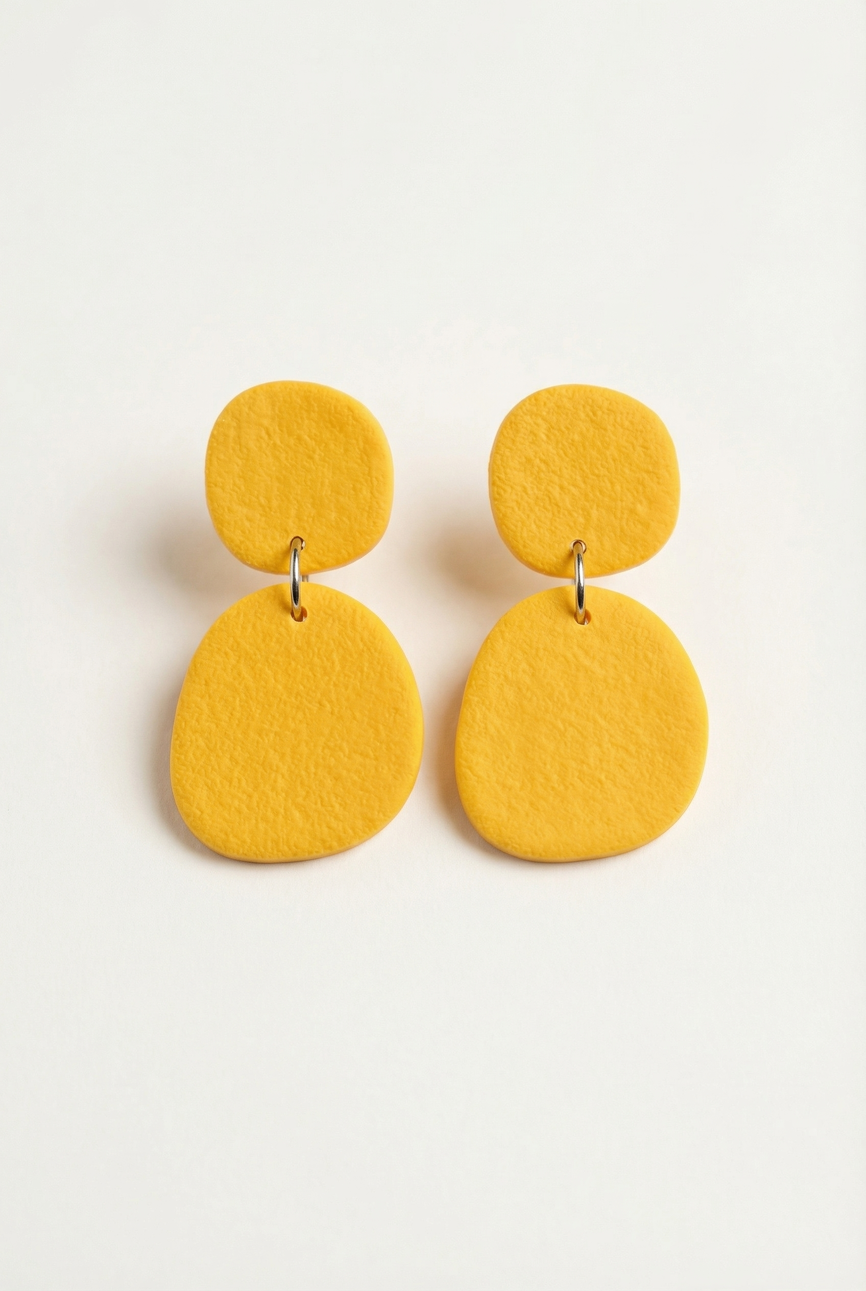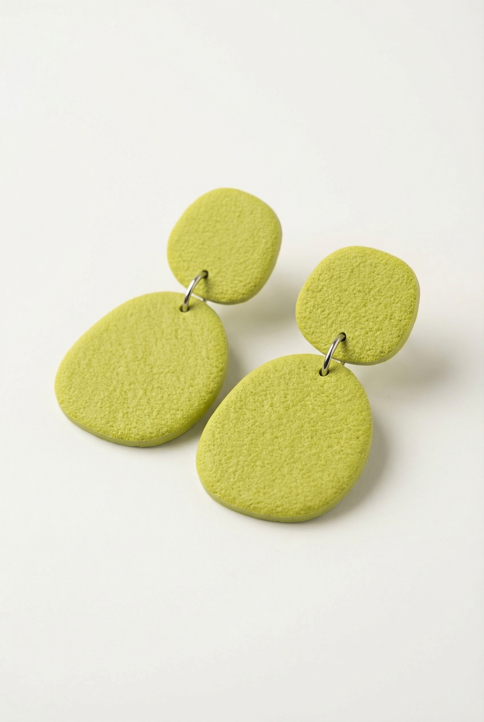 Handmade polymer clay drop earrings in a range of carefully selected colors, each finished with a soft sand-textured surface that adds depth and a natural, matte feel.