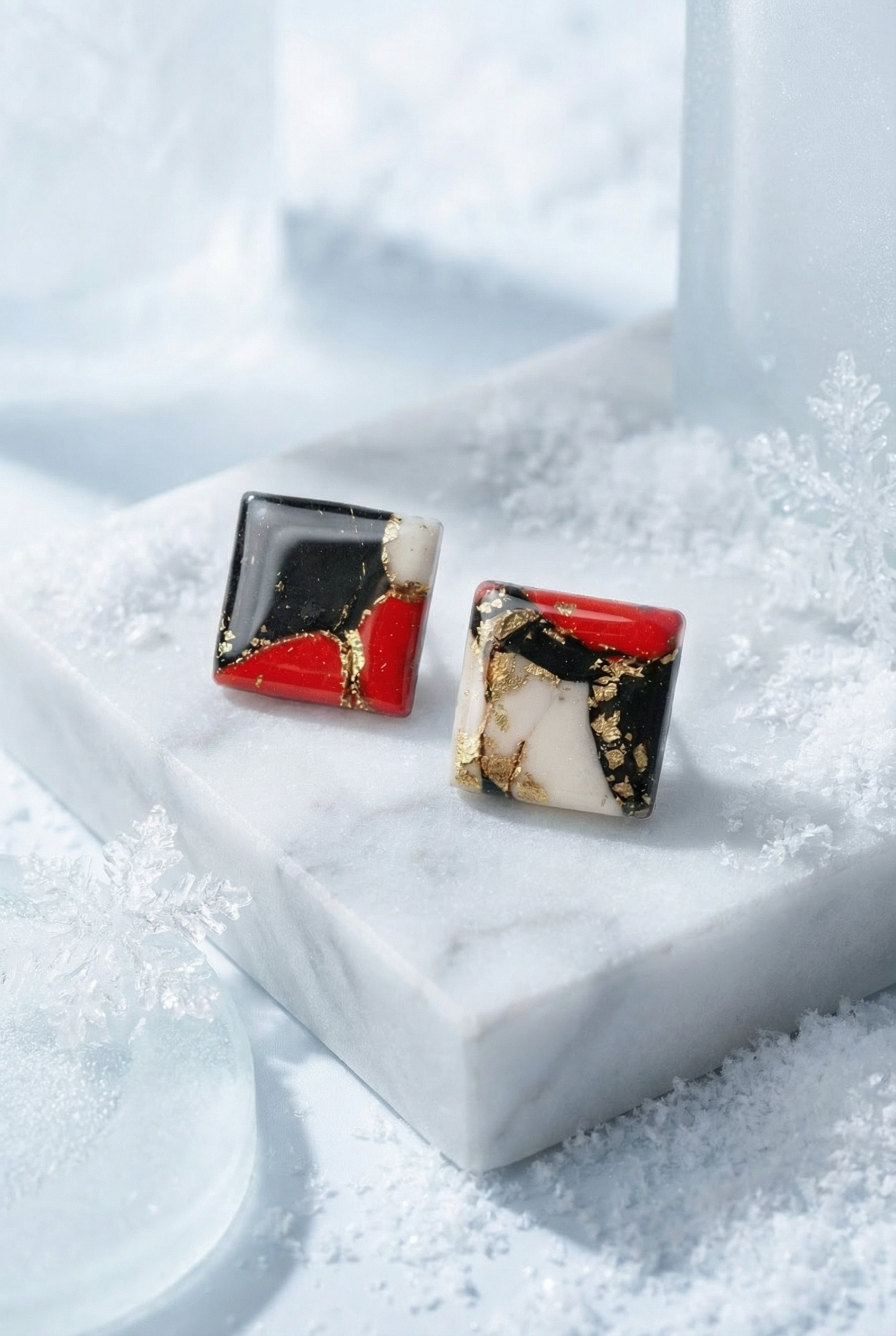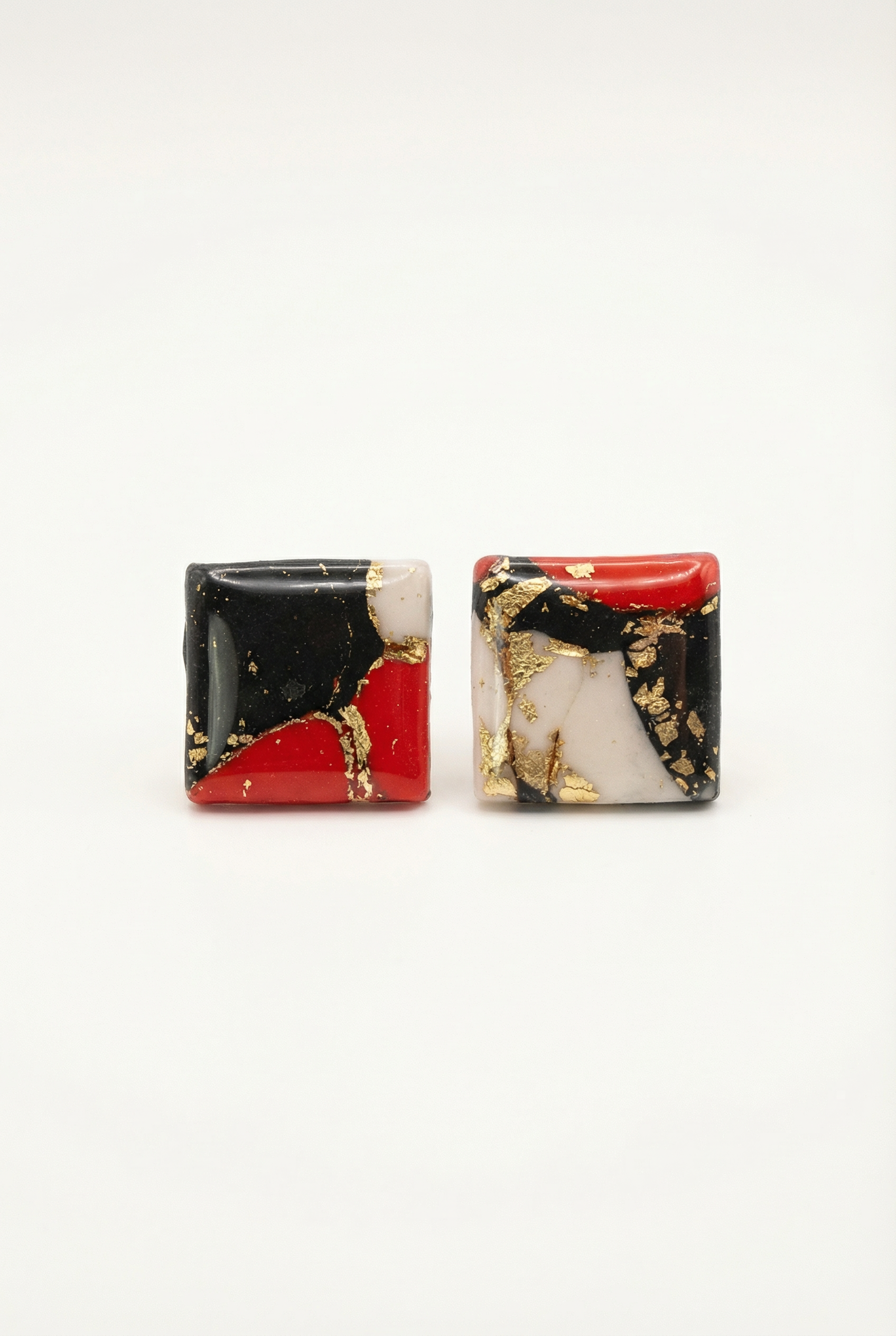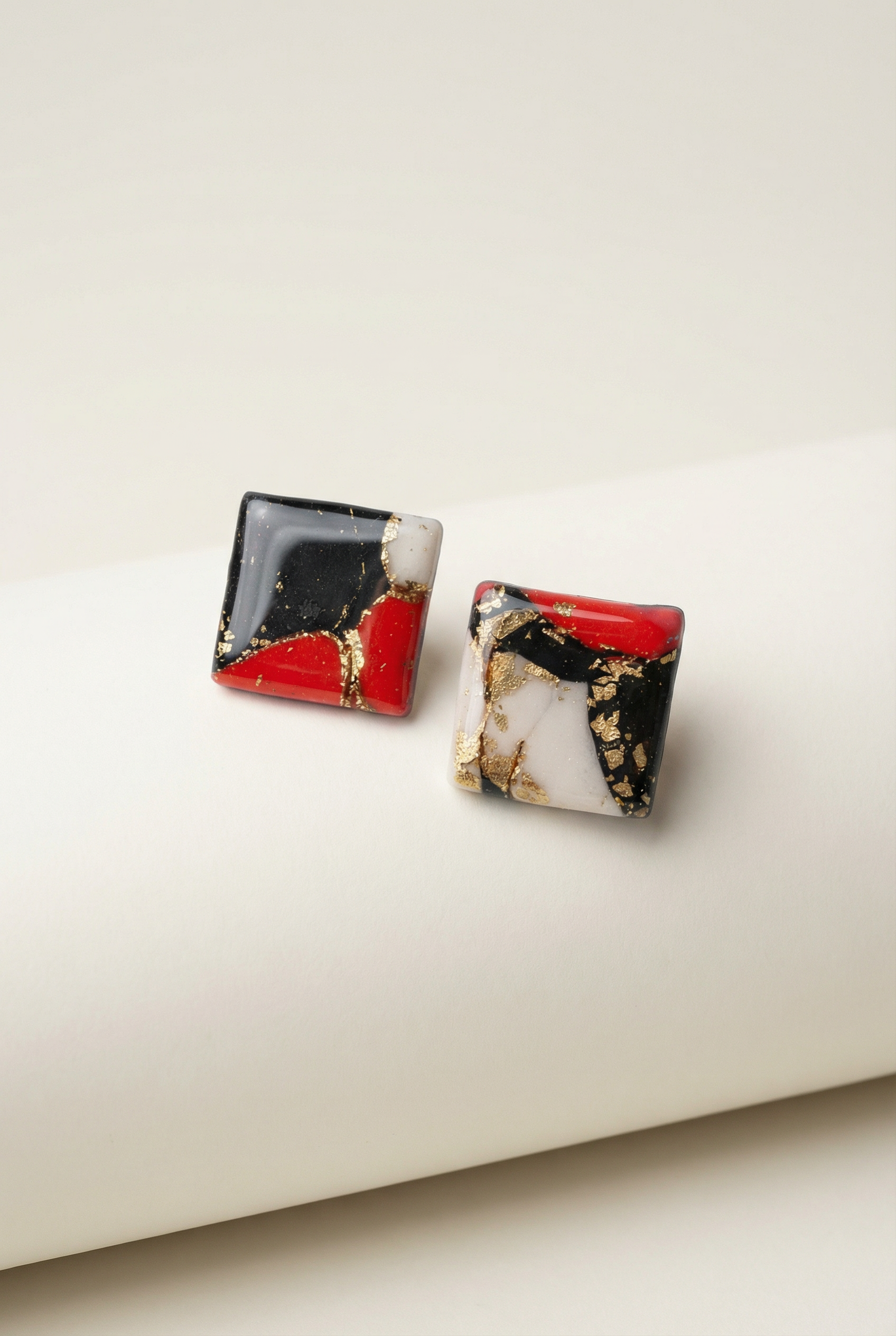 Handmade polymer clay square earrings inspired by bold geometry and modern elegance. Lightweight, unique, and designed to stand out.